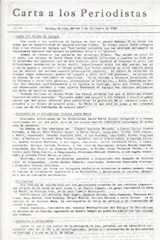 Cartilla informativa: carta al Obispo de Iquique; relegados en la Universidad Técnica Santa María; manifestación infantil en la UNICEF; obispos brasileños solidarizan con la iglesia chilena.